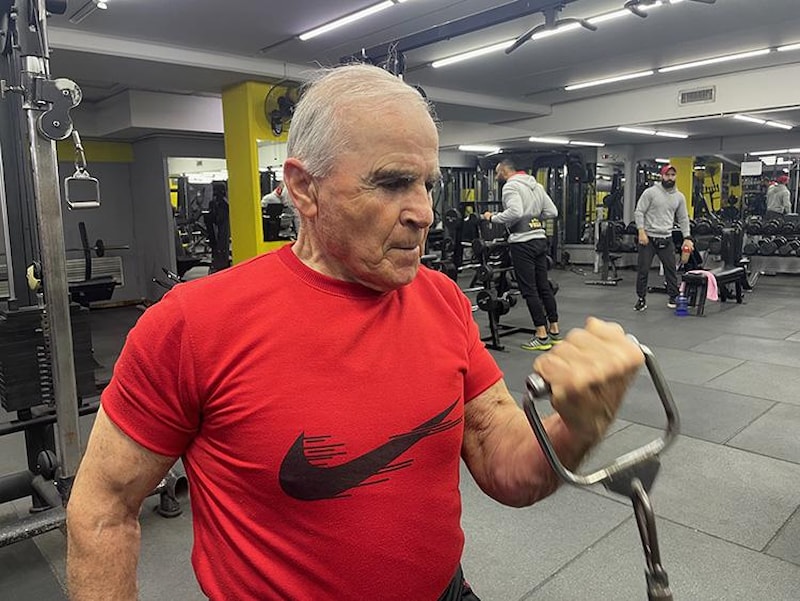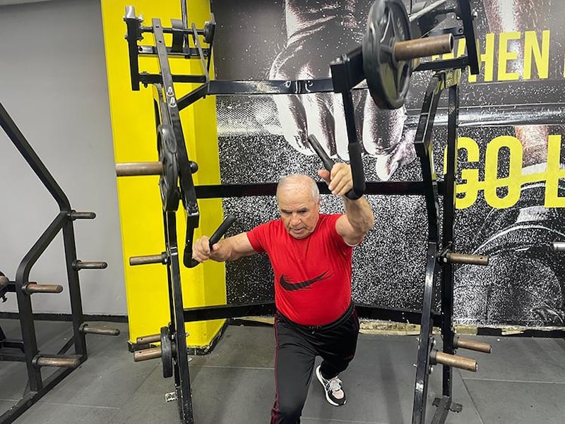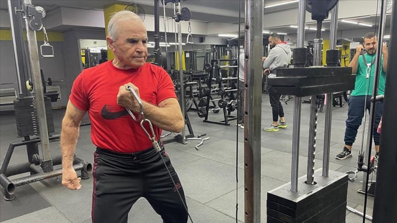 78 yaşındaki Riyad Muneymine, 60 yıldan uzun süredir devam ettiği vücut geliştirme sporuyla adeta yaşlılığa meydan okuyor.