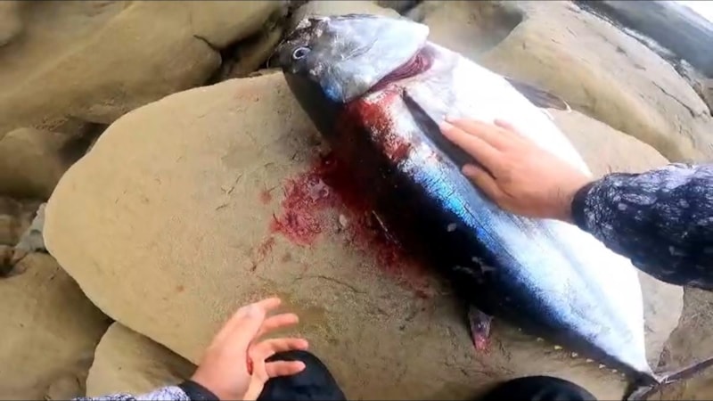 "Balığı çekmekte çok zorlandım. Kayalıkların tepesinde ölüm pahasına mücadele ettim diyebilirim. Oltamı defalarca koparmaya çalıştı ama sonunda benim oldu."