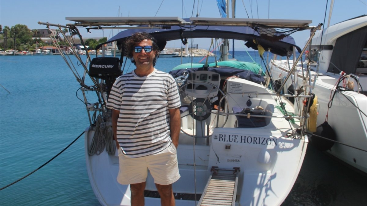 Dünya turunu Muğla'nın Datça ilçesinde tamamlayan 51 yaşındaki Fatih Aksu, yelkenlisini limana demirledi.