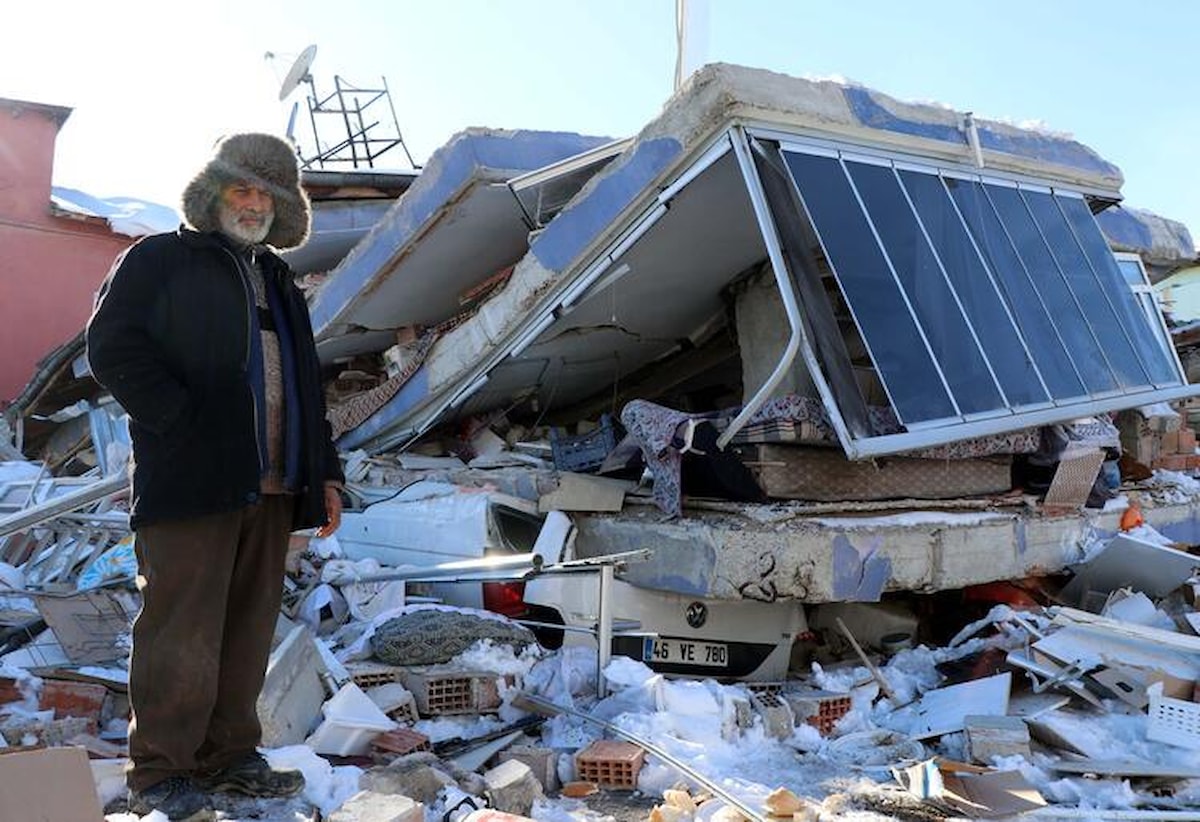 Elbistan ilçesinde meydana gelen 7.6 büyüklüğündeki ikinci depremde, pazarcılık yapan Hüseyin Keskin'in 3 katlı binası yıkıldı.