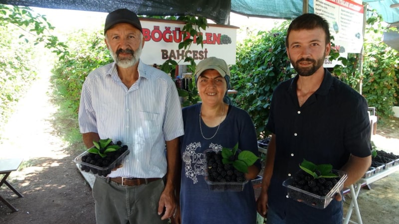 Az sayıda böğürtlen fidesiyle işe koyulan Dulkadir çifti, zamanla 20 bin fideye ulaşırken, hasattan edilen meyvelerden pestil, cevizli sucuk, reçel gibi ürünlerde elde ederek satışlarını gerçekleştiriyor.