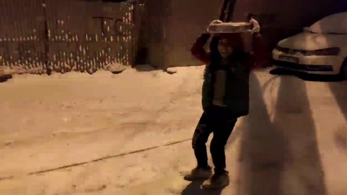 Malatya’da çocukların tepsiyle kar keyfi VİDEO