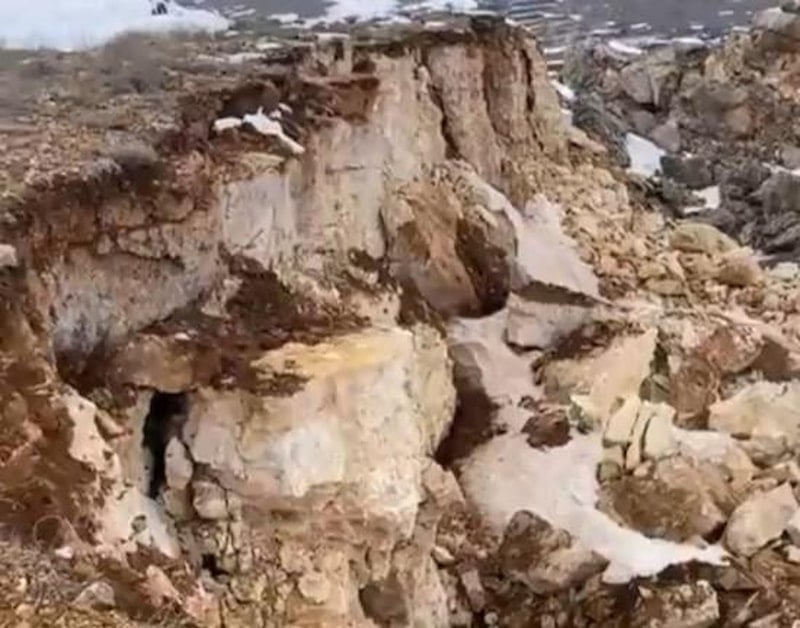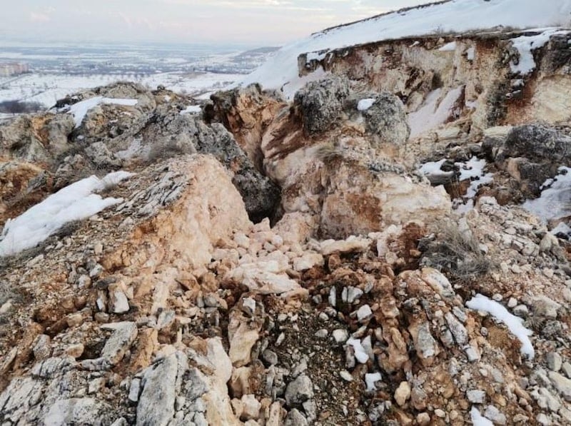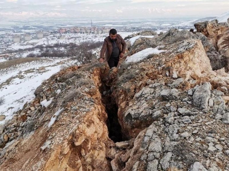 Kahramanmaraş merkezli depremlerin vurduğu Malatya’nın Akçadağ ilçesinde bir dağda derin yarıklar oluştuğu görüldü.