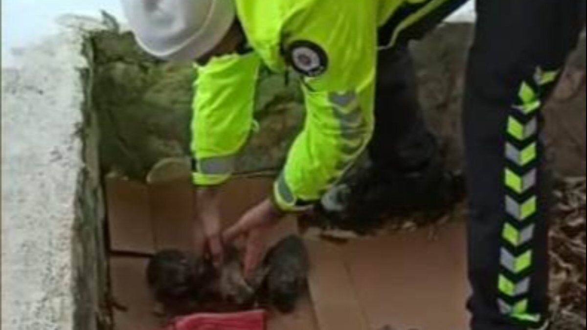 Seslere kayıtsız kalmayarak giden, polis memuru 3 köpek yavrusu ile karşılaştı.