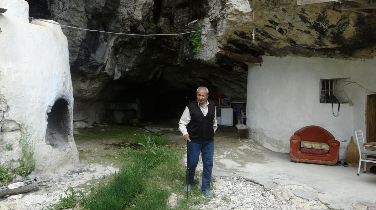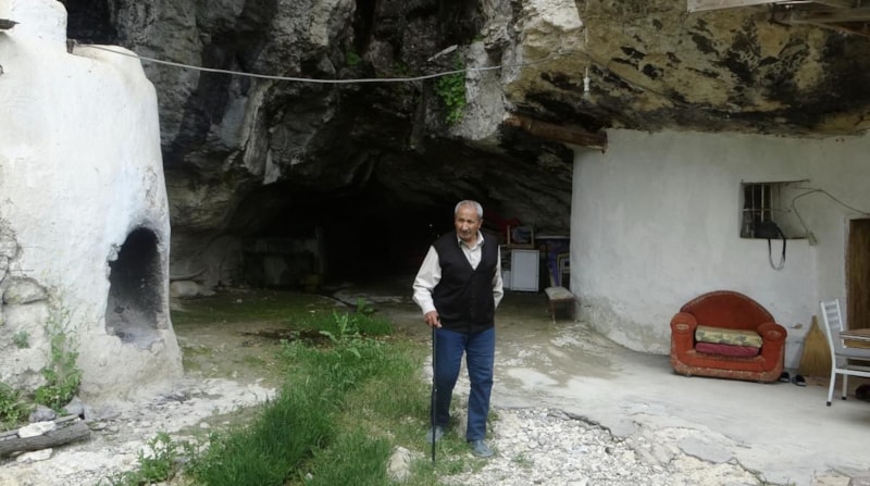 Yaklaşık 250 yıl önce inşa edilen, bin 750 metre rakımda yer alan ve halk arasında 'korku mağarası' olarak bilinen mağara evlerde zaman zaman yaşamını sürdüren Kurt’un hayatı, bölgeye gelen 'Demir dünya' belgesel ekibinin ilgisini çekti.