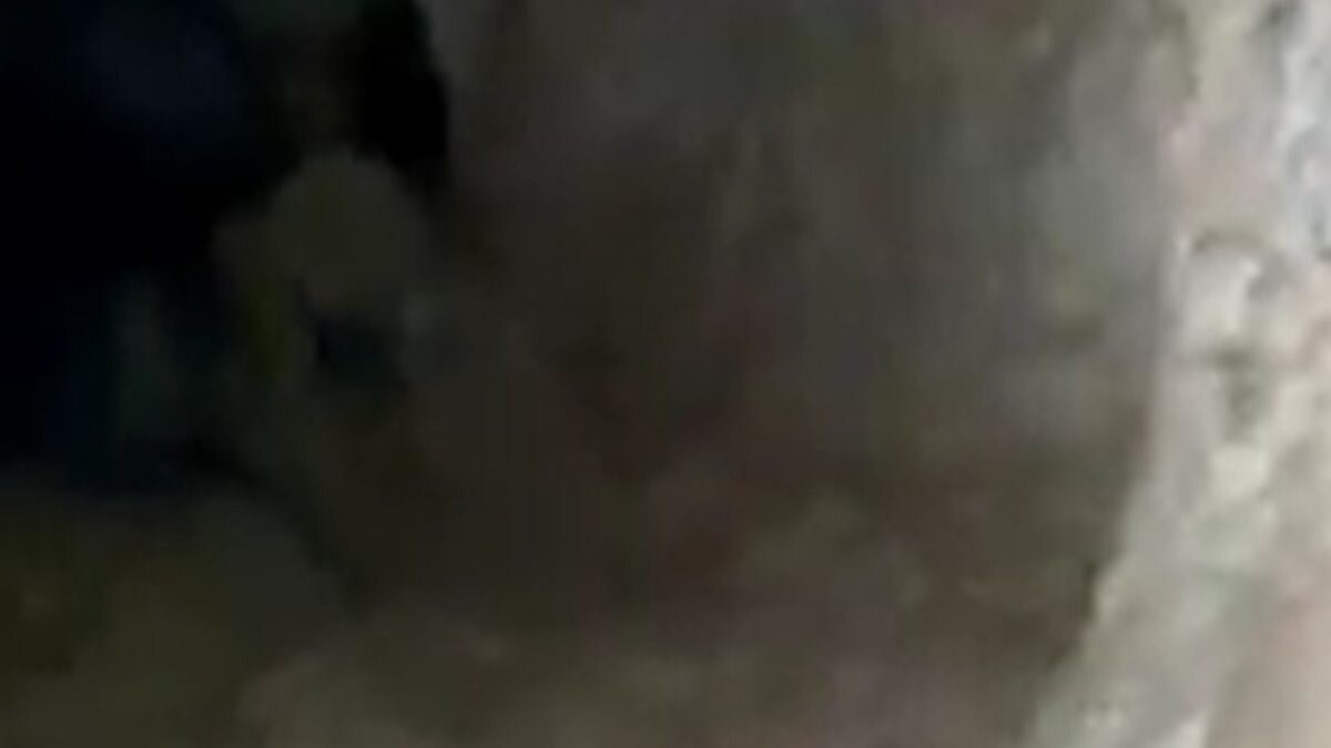 İçeride mahsur kalan bir hayvan olabileceği düşüncesiyle mağaraya giren iki arkadaş, cep telefonunun flaşını açarak video kaydı almaya başladı.