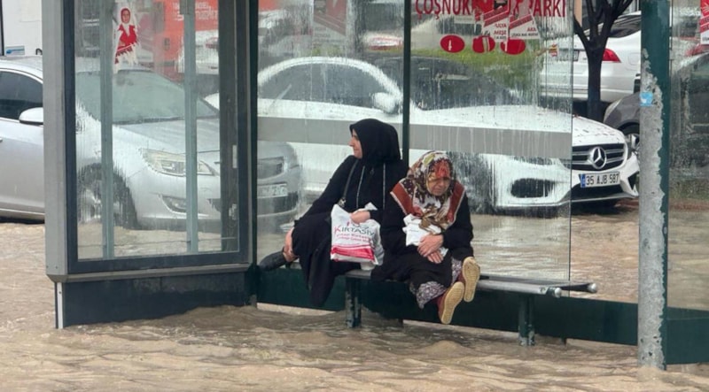 Sağanak nedeniyle polis ekipleri kavşaklarda önlem aldı, bazı vatandaşlar otobüs duraklarına sığındı.