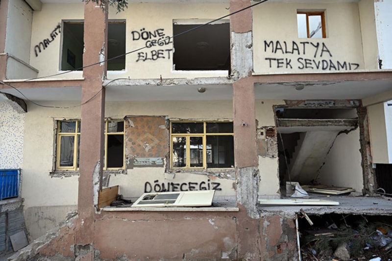 Bazı duvarlarda, "6 Şubat'ı asla unutmayız Malatyam", "Döneceğiz elbet, Malatya tek sevdamız", bazılarında "Sadece hayallerim yıkıldı", "Yaşamak direnmektir Malatyalım" gibi yazılar bulunuyor.
