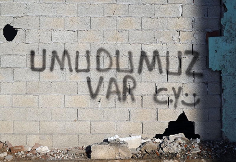 Yeşilyurt ilçesindeki Yeni Boztepe Caddesi'nde yaşayan Yaşar Aydoğan, duvar yazılarında yer aldığı gibi umudun her zaman olduğunu, olmaya da devam edeceğini söyledi.