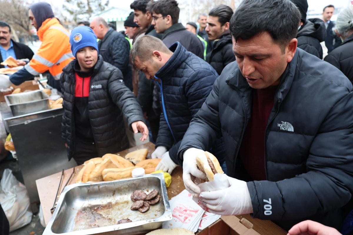 Esnafların katkılarıyla hazırlanan 1 ton Sivas köftesi, Malatya’da depremzede ailelere ikram edildi.