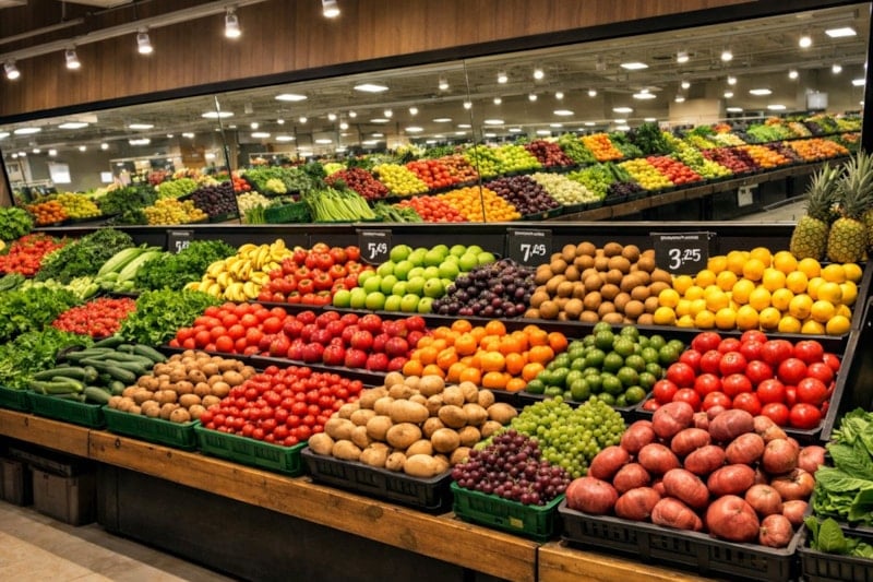 Işığın yansımasıyla sebze ve meyveler daha parlak ve canlı görünürken, bu durum tüketicilerin ürünleri daha kaliteli olarak değerlendirmesine neden oluyor.