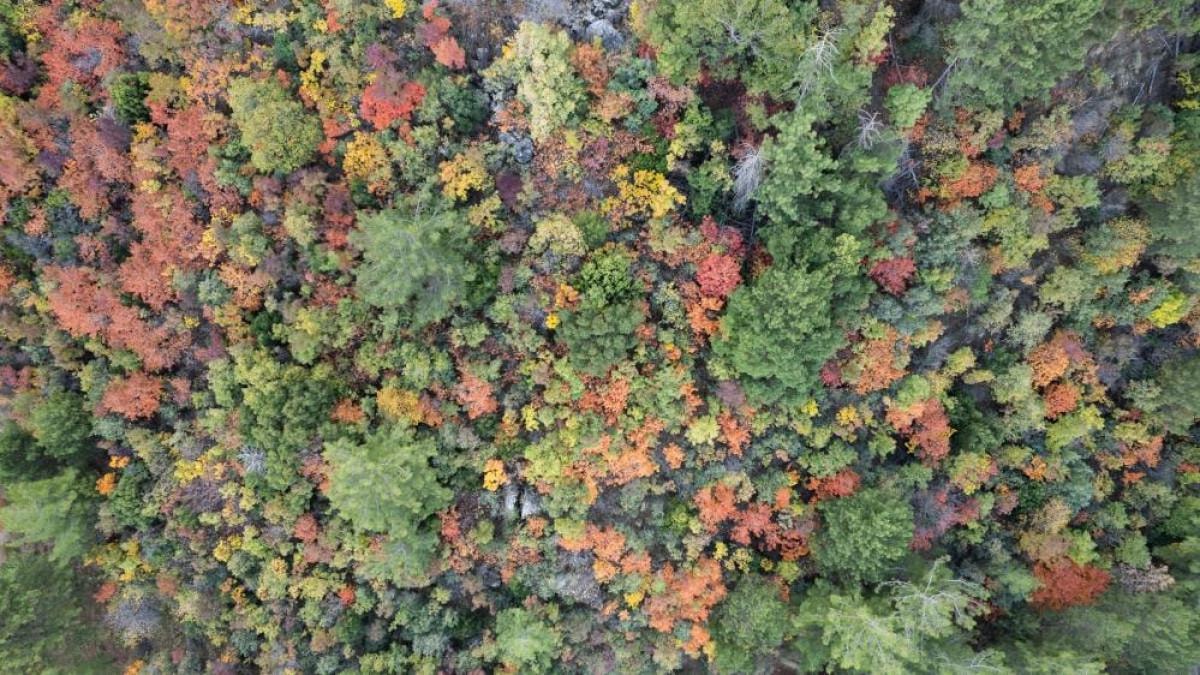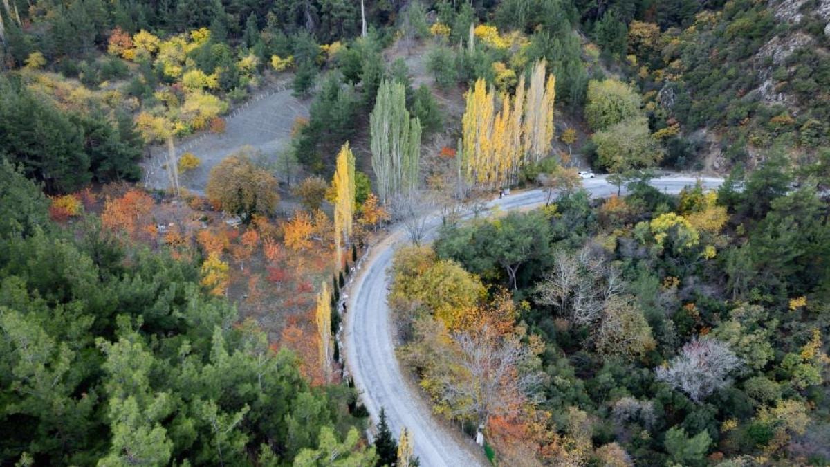 Doğa fotoğrafçılarının sonbahar aylarında uğrak noktası olan Spil Dağı Milli Parkı'ndaki renk cümbüşü, havadan görüntülendi.