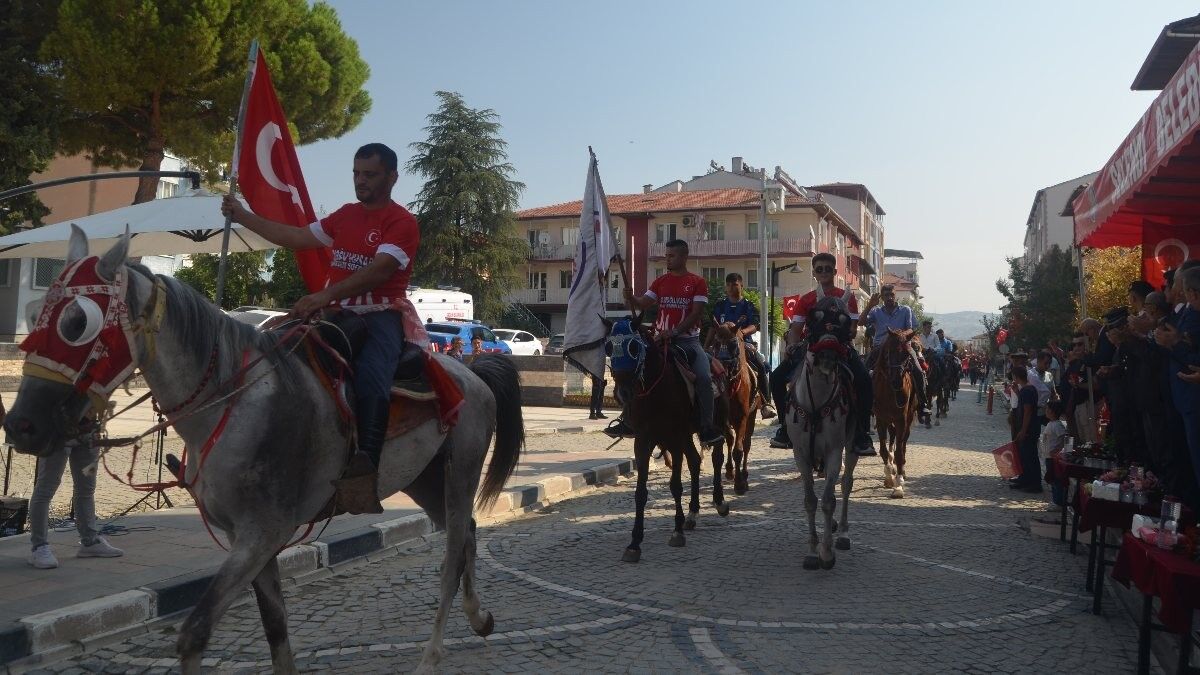 Törende 100 yıl önce olduğu gibi atlı süvari milis kuvvetleri temsili olarak ilçeye giriş yaptı. İlçe Kaymakam Halil İbrahim Okumuş’a Türk bayrağını teslim eden atlı milis kuvvetleri tören alanında bulunanlardan büyük alkış aldı.