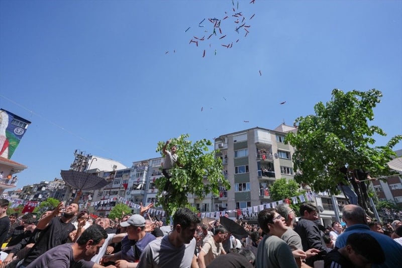 Sultan Camisi'nde sona eren yürüyüşün ardından saçım törenine geçildi. Türkiye'nin çeşitli şehirlerinden festival için gelen binlerce katılımcı, saçılan macunları kapmak için birbiriyle yarıştı.