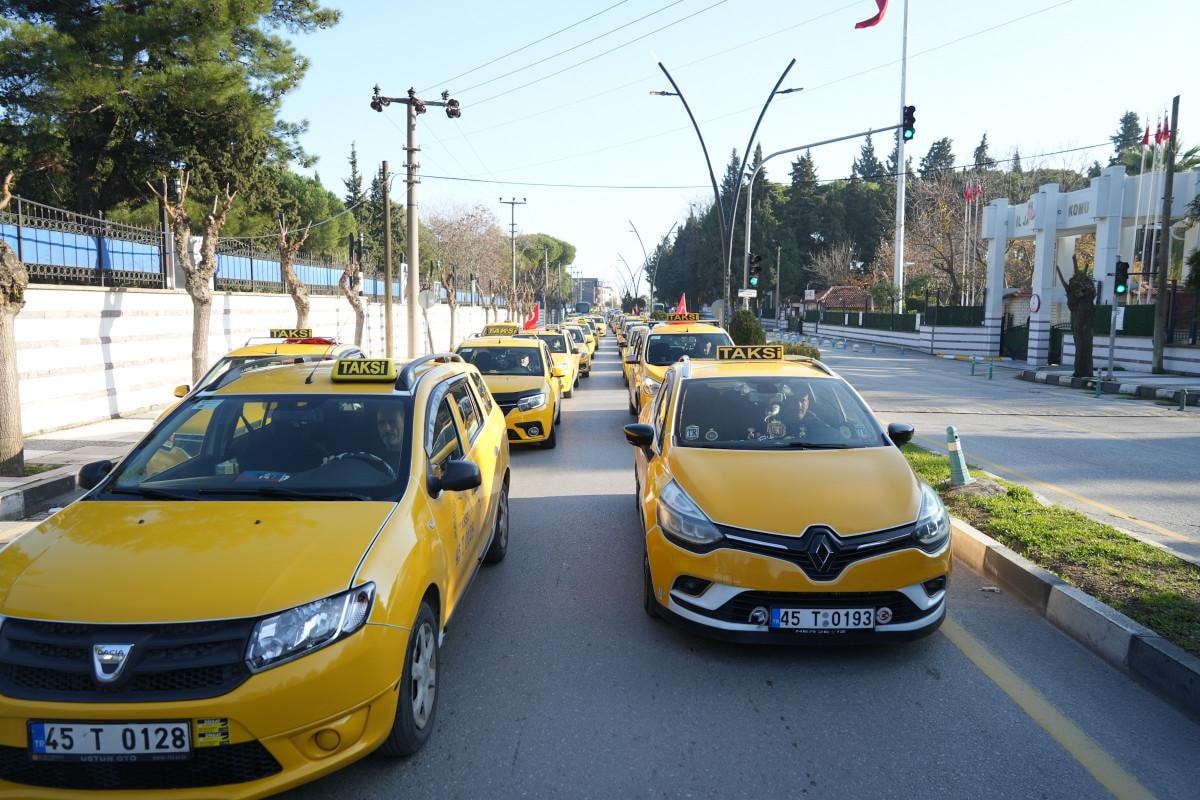 Manisalı taksiciler olaya tepki göstermek amacıyla 200 araçlık konvoy düzenledi.