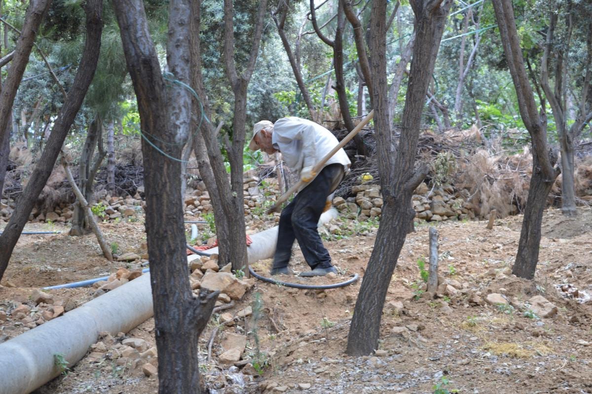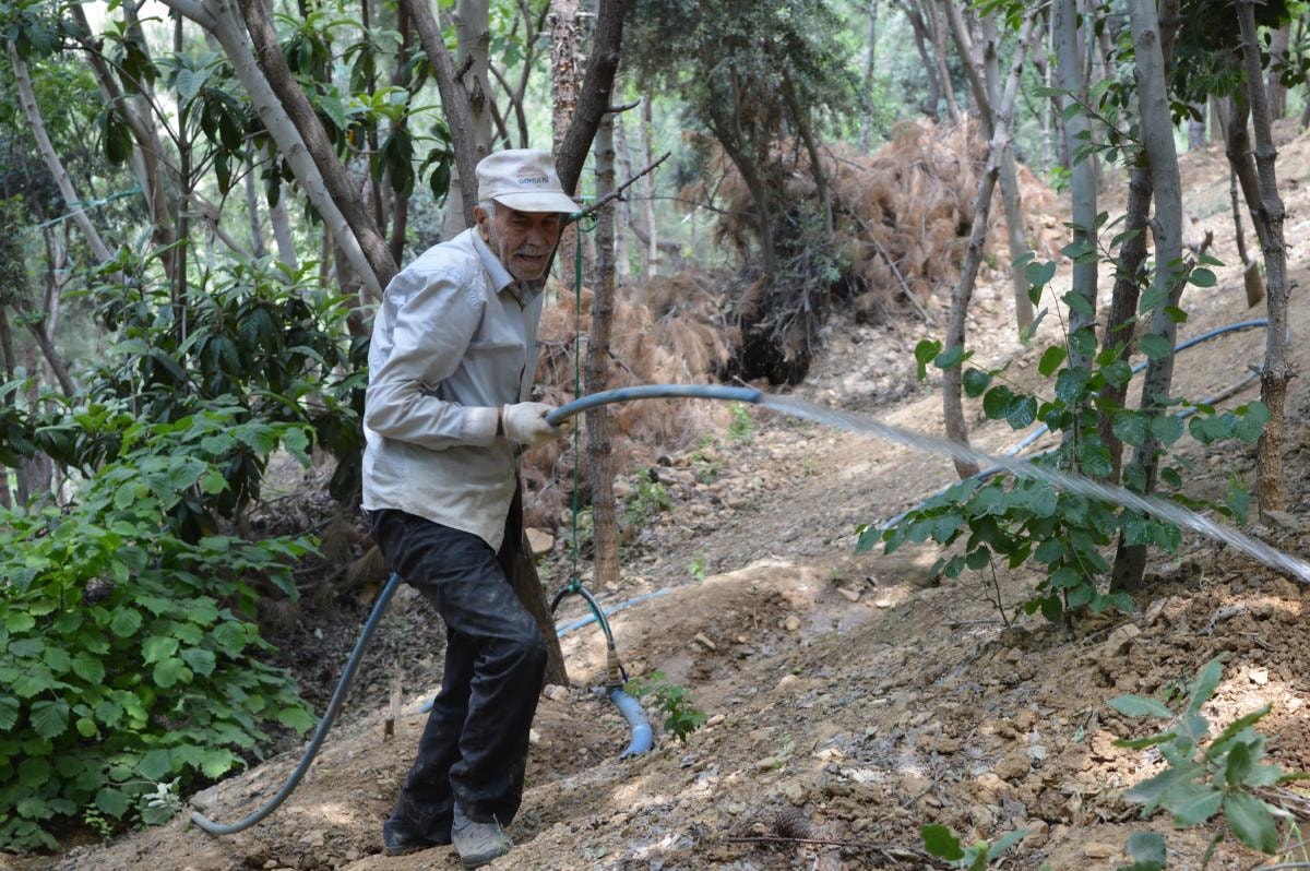 Yıllarca diktiği fidanları kontrol eden Erginoğlu, emeklerinin karşılığını aldı.