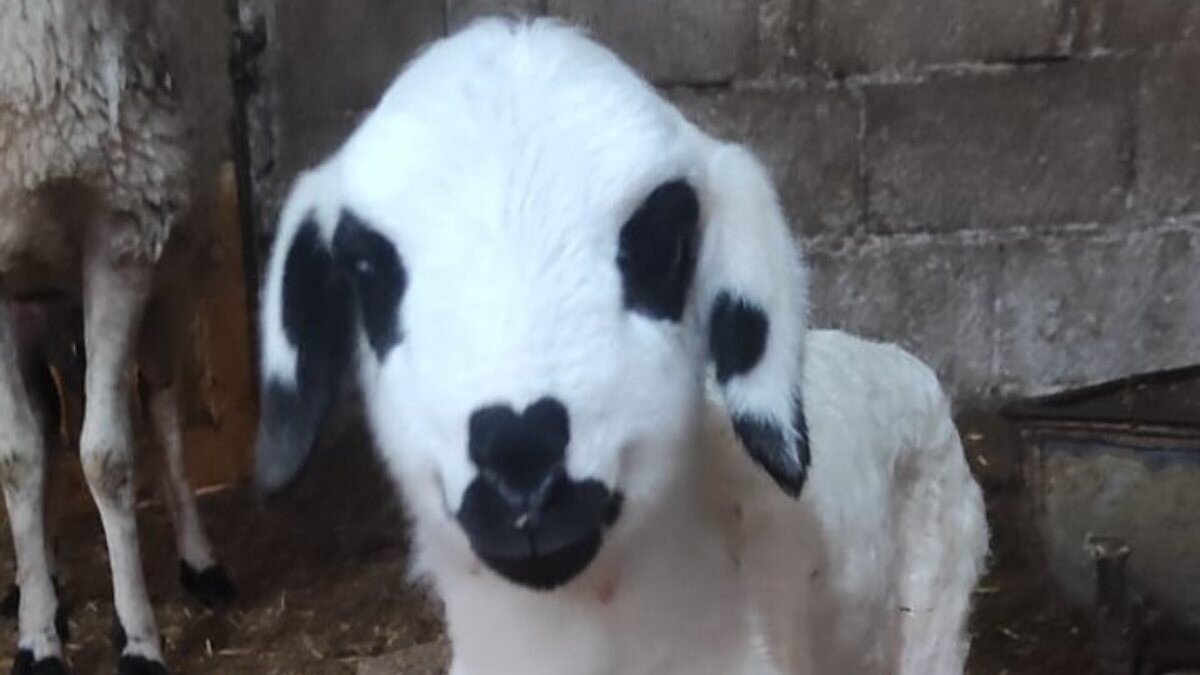 Sağlıklı bir şekilde dünyaya gelen kuzunun burunun üst kısmında kalp figürü görenleri hayrete düşürdü.
