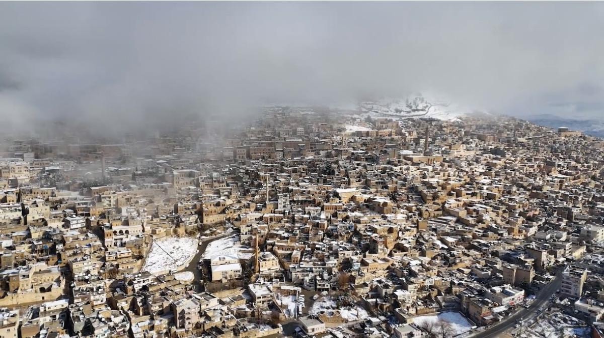 Mardin Valiliğinin sosyal medya hesaplarından yapılan paylaşımda, karla buluşan Mardin'in drone ile kaydedilen görüntüleri yer aldı.