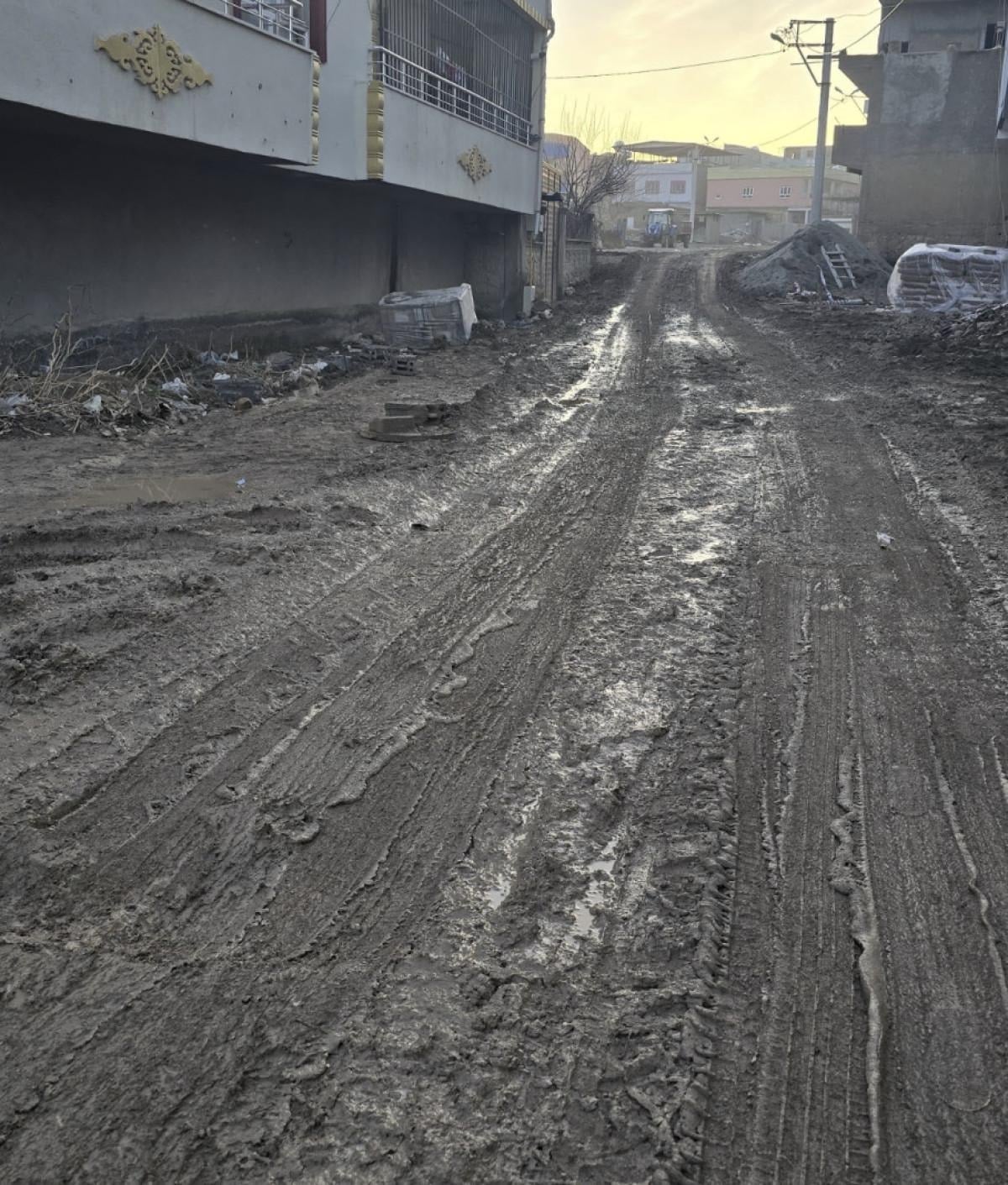 Mazıdağı ilçesinde kayyum tarafından parke taşı ile döşenen yol, DEM Partili belediye tarafından altyapı çalışmaları gerekçesiyle kazıldı ve bakımsız bırakıldı.