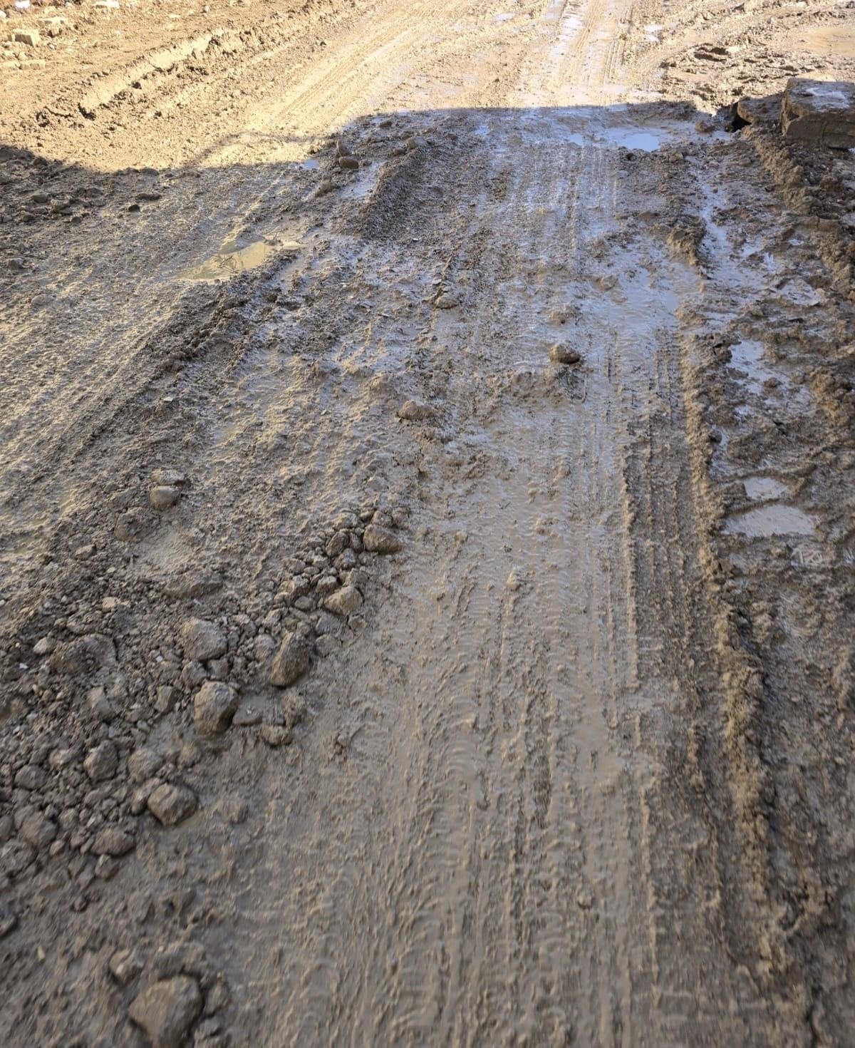Yağmurun etkisiyle yol çamura gömülerek kullanılamaz hale geldi.