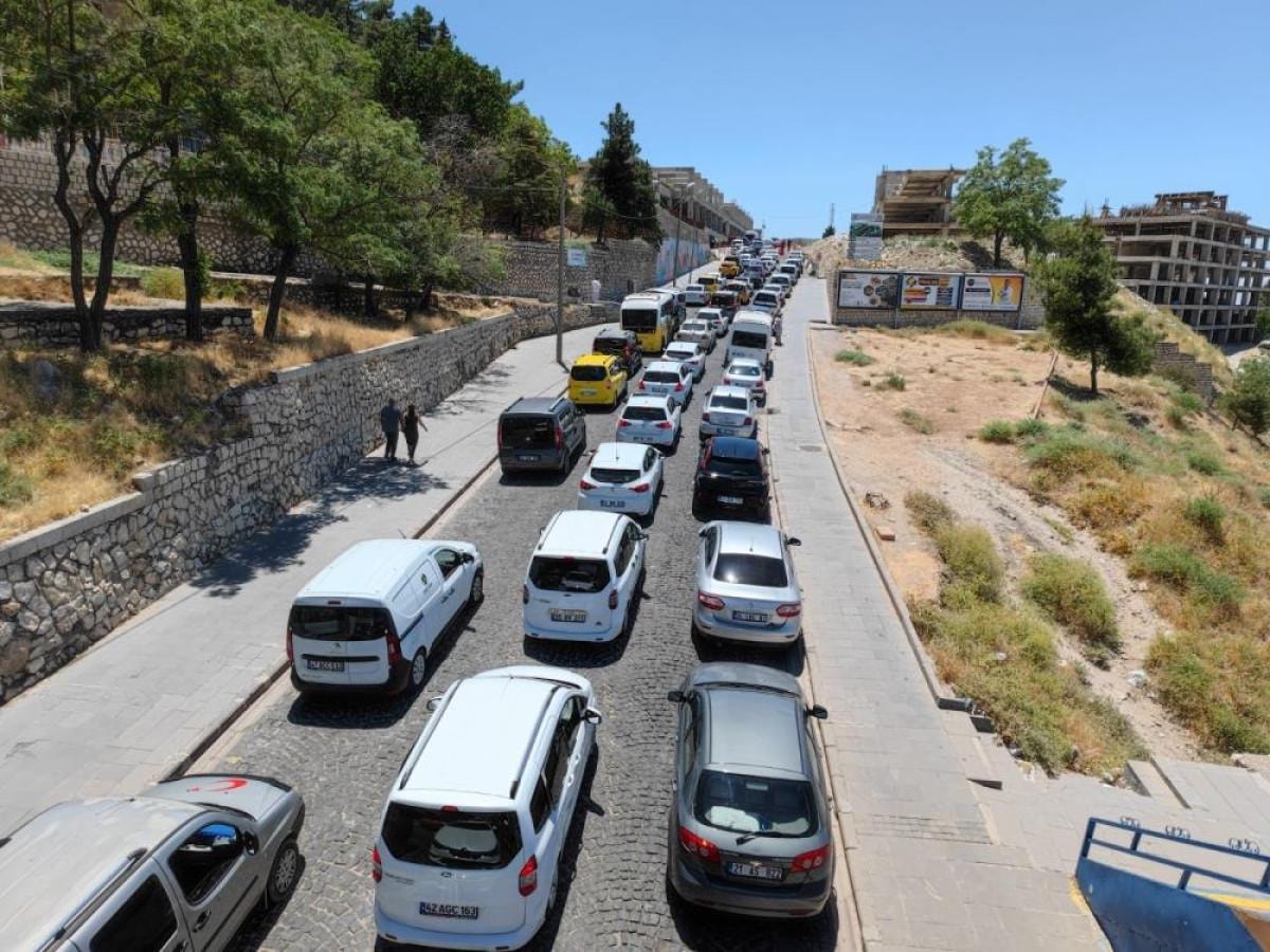 Ege ve Akdeniz'e gitmeyenler, Mardin'in eşsiz sokaklarında gezebilmek için şehrin girişinde uzun araç kuyrukları oluşturdu.