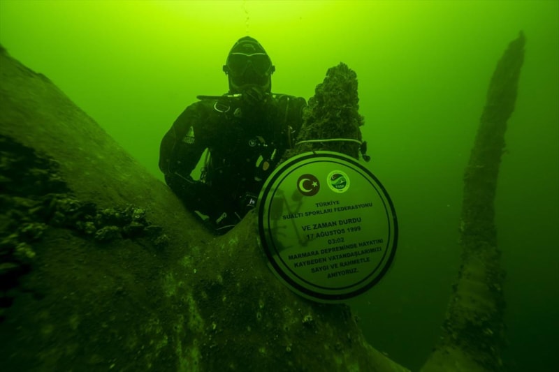 Marmara Depremi'nin merkez üssü Kocaeli'nin Gölcük ilçesinde deprem gerçeğini hatırlatması hem de afet bilinci oluşturması açısından deniz dibindeki afet izleri görüntülendi.