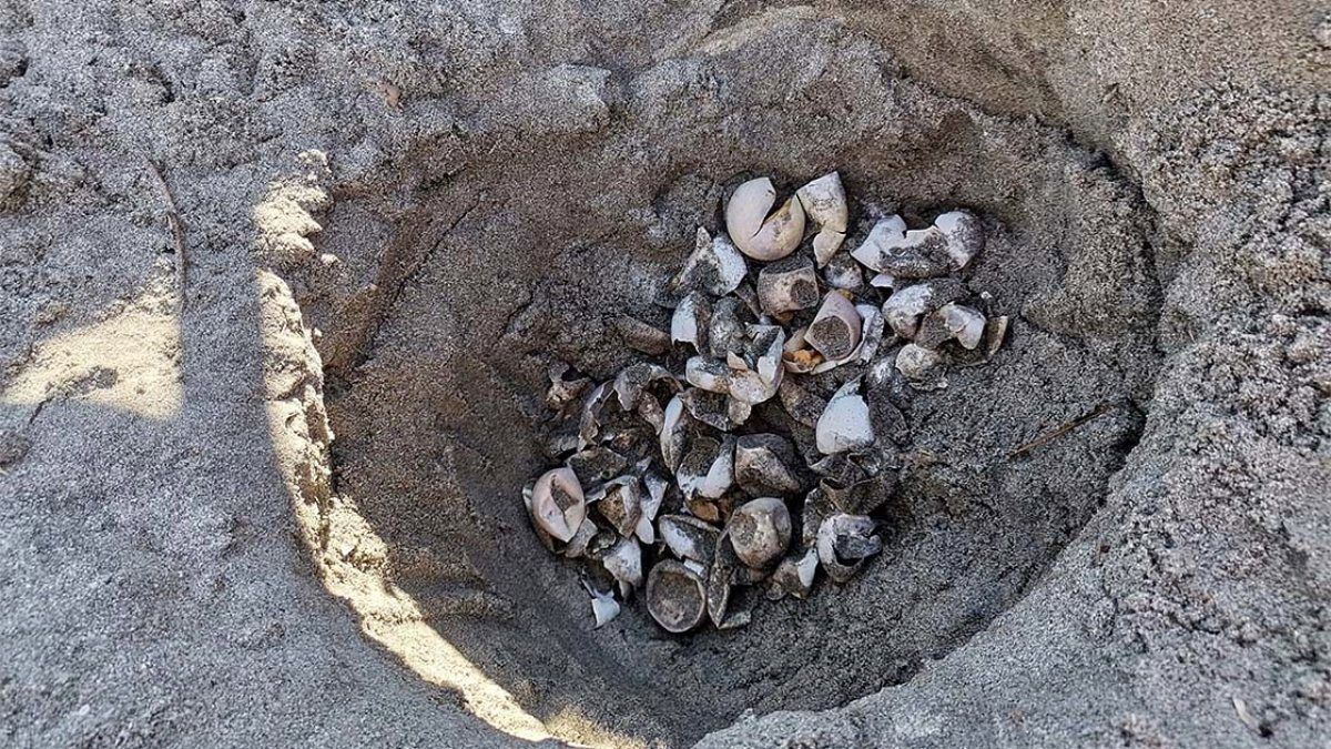 "Yuvayı kontrol ettiğimizde 50 yumurta olduğunu tespit ettik. Bunlardan çıkıp sağ kalan 32 yavruyu denize saldık. Çok şaşırtıcı. Çünkü ağustos ortası ve sonu itibarıyla kaplumbağalar çok nadir yuvalama yapmakta ancak carettalar için bu biraz daha ekstrem bir durum bizim için. Dişinin yumurtalarını 15-20 Ağustos tarihlerinde bıraktığını tahmin ediyoruz.