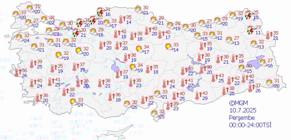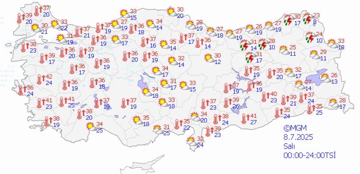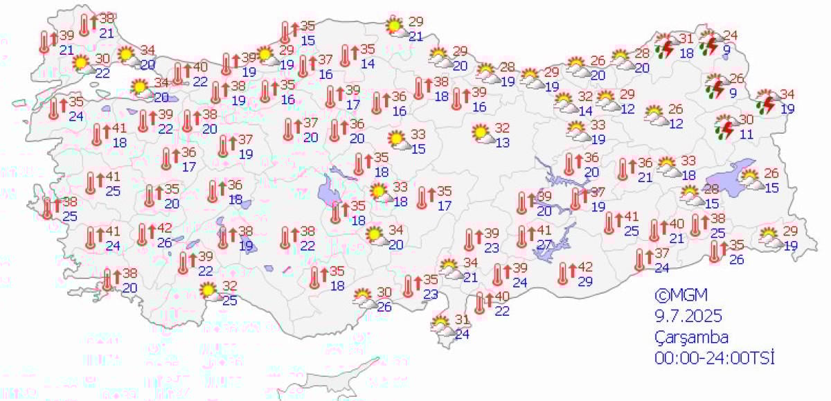 Aynı şekilde Edirne 39, Manisa 42 ve Diyarbakır 40 derecelere kadar çıkacak.