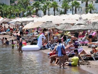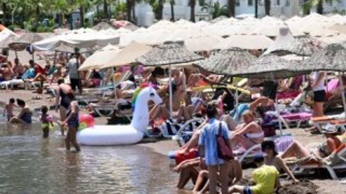 Marmaris'te hava sıcaklığı 37, deniz suyu sıcaklığı ise 23 dereceyi buldu. Öğle saatlerinde etkisini hissettiren sıcak hava dalgası ile bunalan tatilci ve turistler plajlara akın etti.