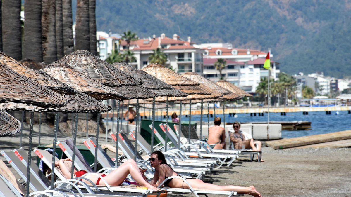 Oteller bölgesi olarak adlandırılan Uzunyalı mevkisinden Turban mevkisine kadar uzanan 6 kilometrelik mavi bayraklı plajlarda yabancı turistler sessiz ortamda tatilin keyfini yaşadı.
