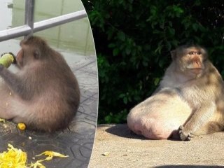 Bangkok'ta bir pazarda turistler tarafından kavun, karpuz, erişte, milkshake ve mısır ile beslenen maymun yediği şekerli yiyeceklerden obez oldu.