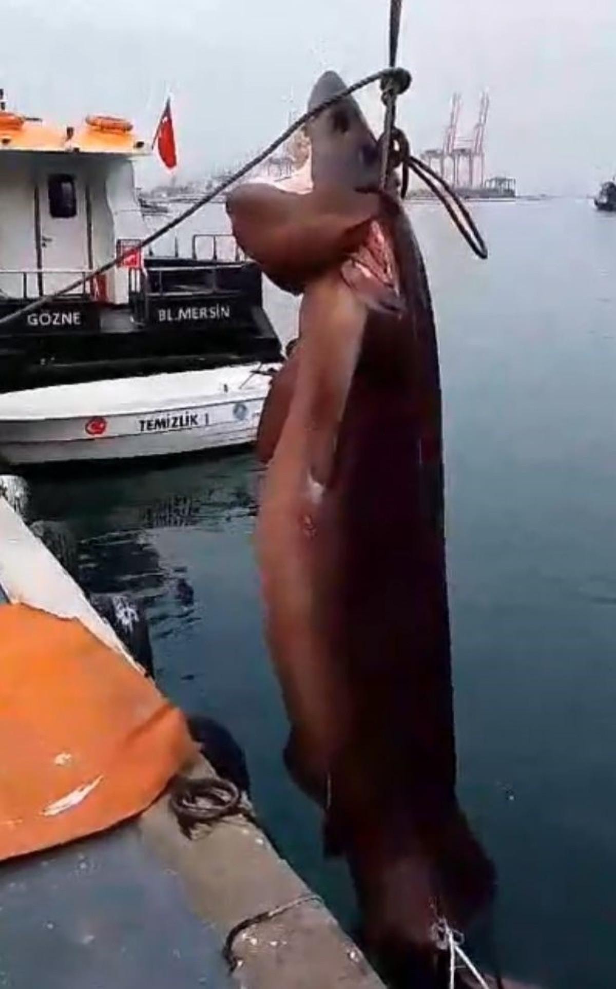 Yakalanan köpek balığı ile ilgili bilgi veren Prof. Dr. Deniz Ayas," 2 bin 500 metre derinliğe kadar dağılımı bulunan, diğer köpekbalıkları, vatozlar, kemikli balıklar, kalamarlar, yengeçler, karidesler gibi çok geniş bir besin tipi aralığına sahip derin deniz bir köpek balığı türüdür. Dip trolü, parakete ve galsama ağı balıkçılığında tesadüfi av yada hedef dışı av olarak yakalanmaktadır. Bu tür için en büyük tehdit balıkçılık faaliyetidir. 4 metre 10 santim boyunda 400 kilogram ağırlığında dişi bir birey" dedi.