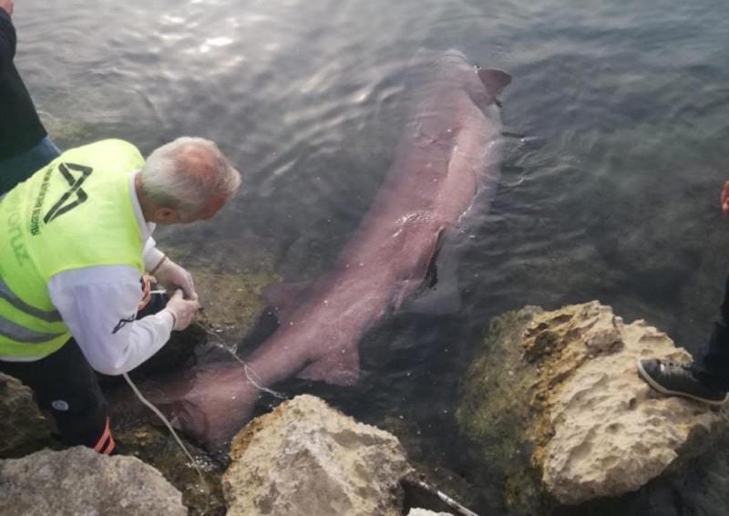 Telef olan köpek balığını gören balıkçılar durumu Mersin Büyükşehir Belediyesi ekiplerine bildirdi.