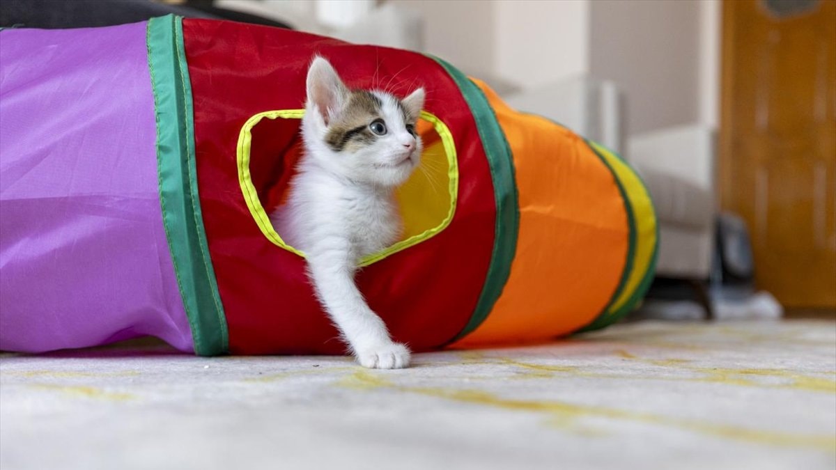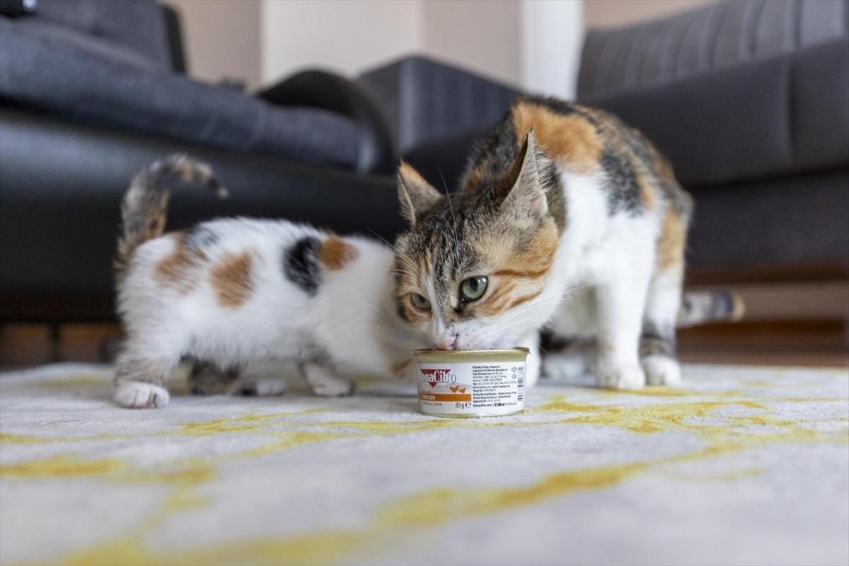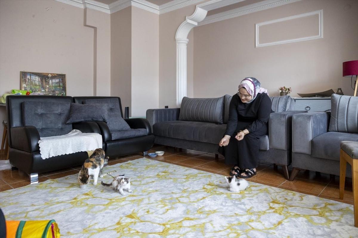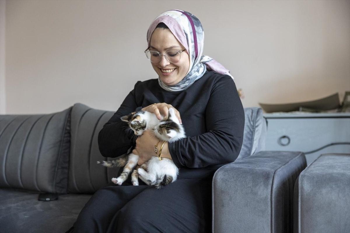 Anne kediyi kalıcı, yavrularını da geçici olarak sahiplenen Kısmet Efetürk, bir aydır kedilere sevgiyle baktığını belirtti.