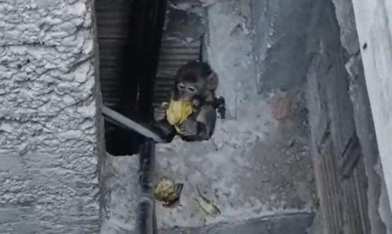 Binaların havalandırma boşluklarında saklanan maymunun evlere girmemesi için mücadele edenlerden Fatih Balkış, koydukları muzu alan hayvanın kayıplara karıştığını söyledi.