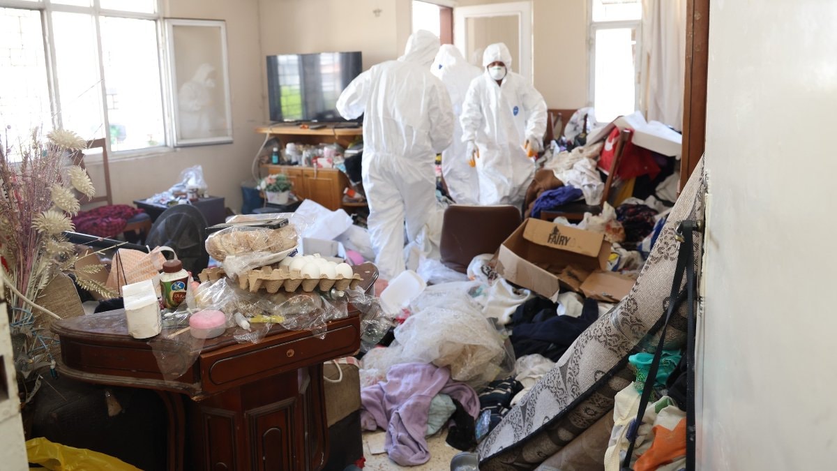 Mülk sahibinin de izniyle gerçekleştirilen temizlik çalışmasında, yaşlı kadının 27 yaşındaki oğluyla birlikte yaşadığı evden yaklaşık 6 ton çöp çıkarıldı.