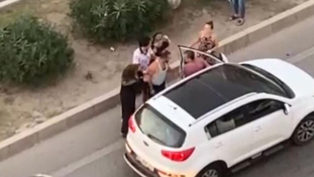 Beyaz otomobilin ön koltuğundan inen bir kadın ise 'polis' diye bağırdıktan sonra "ne yapıyorsun" diyerek sürücüyü yumruklayan kişiye tepki gösterdi.