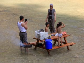 Denize girmek istemeyenler Erdemli Limonlu'da bulunan Kayacı Vadisi'nde çay suyunda serinlemeyi tercih etti.