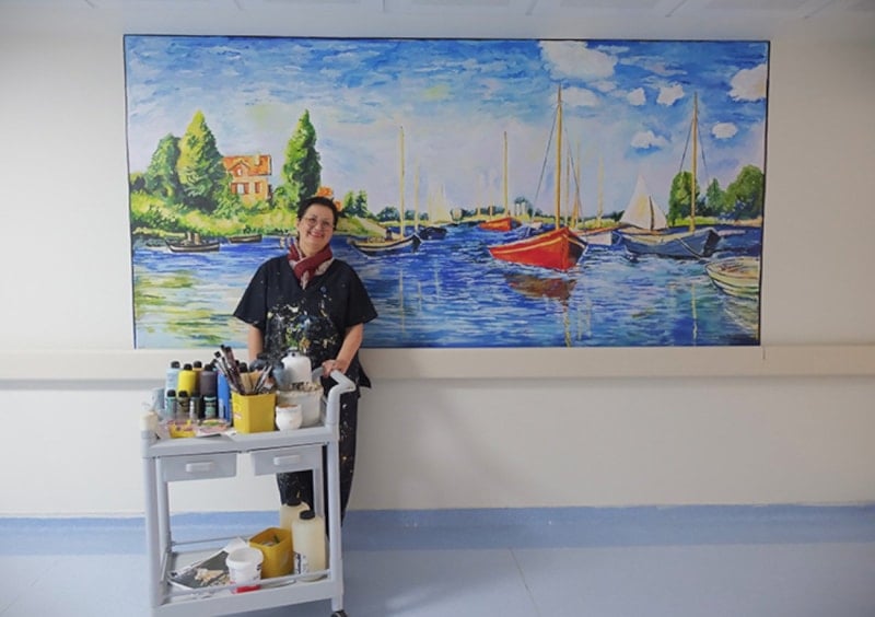 Binaların dış cephelerini ünlü ressamların eserleriyle süsleyerek tanınan ressam Nazife Bilgin Hazar, bu kez fırçasını hastanede tedavi gören çocuklar için kullandı.