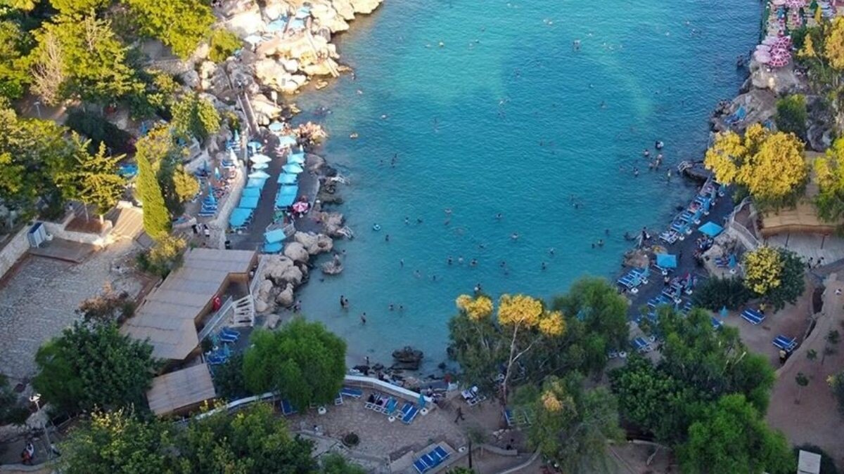 Türkiye'nin önemli turizm merkezlerinden Mersin'in Silifke ilçesi sahilinde bulunan Yapraklı Koy halk plajı, tatlı ve tuzlu suyun karıştığı turkuaz renkli denizi ile dikkat çekiyor.