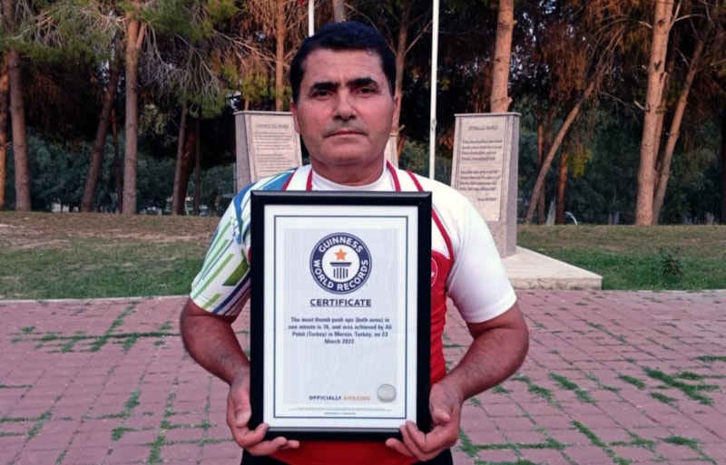 2018'de 252 kez tek ayak üzerinde ip atlayarak rekora imza 3 torun sahibi 56 yaşındaki adam, bu kez 'Başparmakla şınav çekme' yarışmasında rekor kırdı. Rekortmen adam, ikinci kez Guinness Rekorlar Kitabı'na adını yazdırdı.