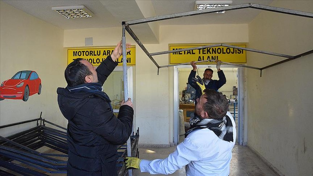 Şanlıurfa'da meslek lisesinde depremzedeler için çadır yapılıyor
