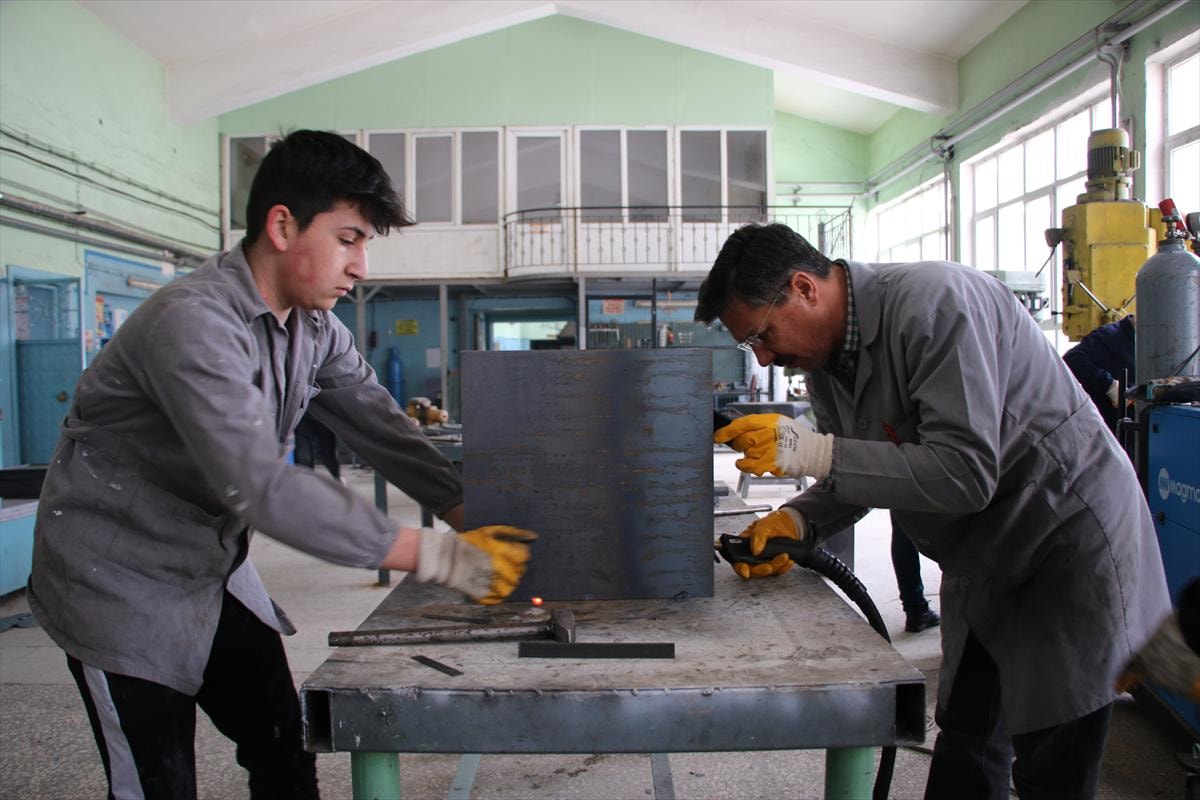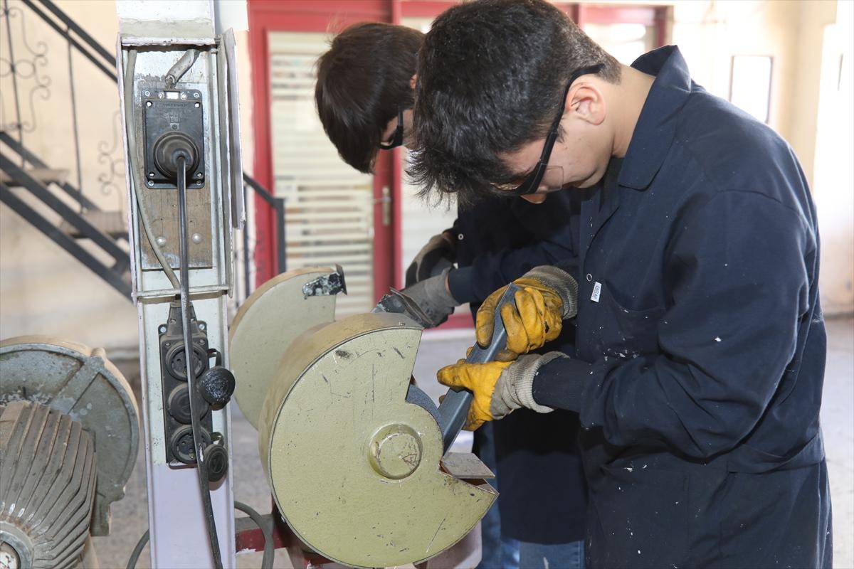 Siverek Ahmet Koyuncu Mesleki ve Teknik Anadolu Lisesi Metal Teknolojisi Alanı'na ait atölyede başlayan üretime okulun öğretmenleri ile bir grup öğrenci katılıyor.