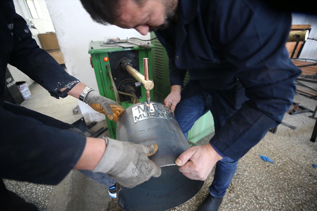 Ankara'nın Çubuk ilçesinde meslek lisesi öğretmen ve öğrencileri, Kahramanmaraş merkezli depremlerden etkilenen depremzedeler için soba üretimi yapıyor.