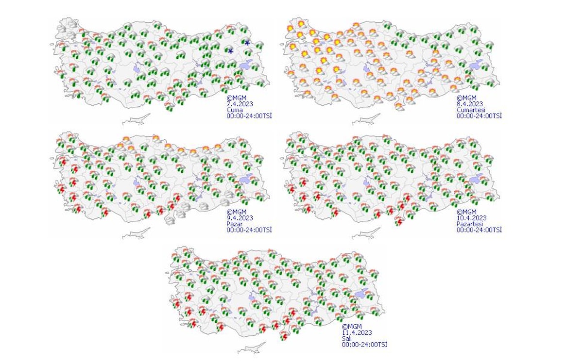 Meteoroloji Genel Müdürlüğü, 5 günlük hava tahmin raporunu yayınladı.