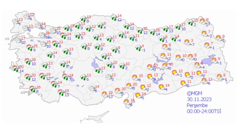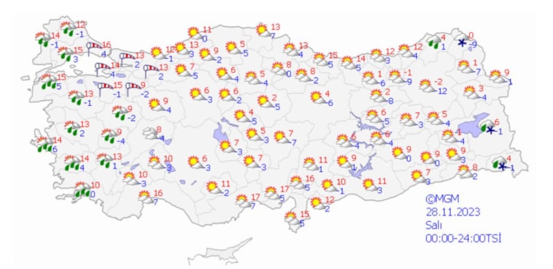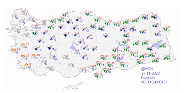 Meteoroloji Genel Müdürlüğü, yeni bir tahmin haritası yayınladı.