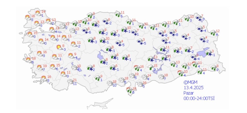 Çok bulutlu, akşam saatlerinden sonra aralıklı yağmur ve karla karışık yağmurlu, yüksekleri kar yağışlı