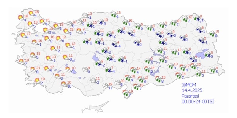 Çok bulutlu, öğleden sonra aralıklı yağmurlu, iç ve yüksek kesimleri karla karışık yağmur ve kar yağışlı