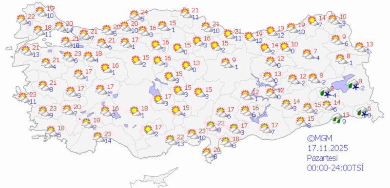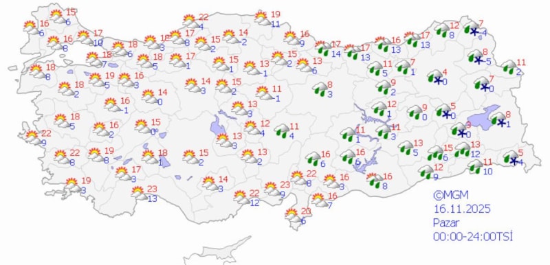 Meteoroloji Genel Müdürlüğü, son hava durumu raporunu yayımladı.