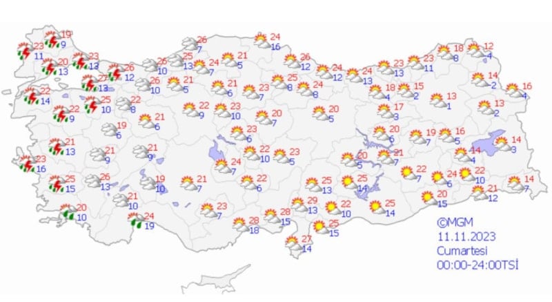 Meteoroloji Genel Müdürlüğü, İstanbul dahil 11 ilde, bugün etkili olan güneşli ve sıcak havanın, yarından itibaren yağmura dönüşeceğini duyurdu.